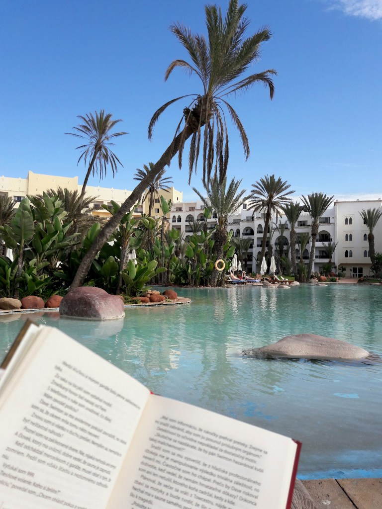 Keď som sa druhý deň ráno zobudil, tak som po raňajkách zamieril rovno v tomu XXL bazénu, ktorý som mal takmer celý pre seba. Pred odletom do Maroka som sa ešte zastavil u tatka a zobral si z jeho knižnice dáku detektívku z dostihového prostredia s názvom Favorit. Moc ma to nebavilo, tak som knihu rýchlo zatvoril, šľahol sa na pár minút do bazéna a vybral sa radšej na špacírky pobrežím.
