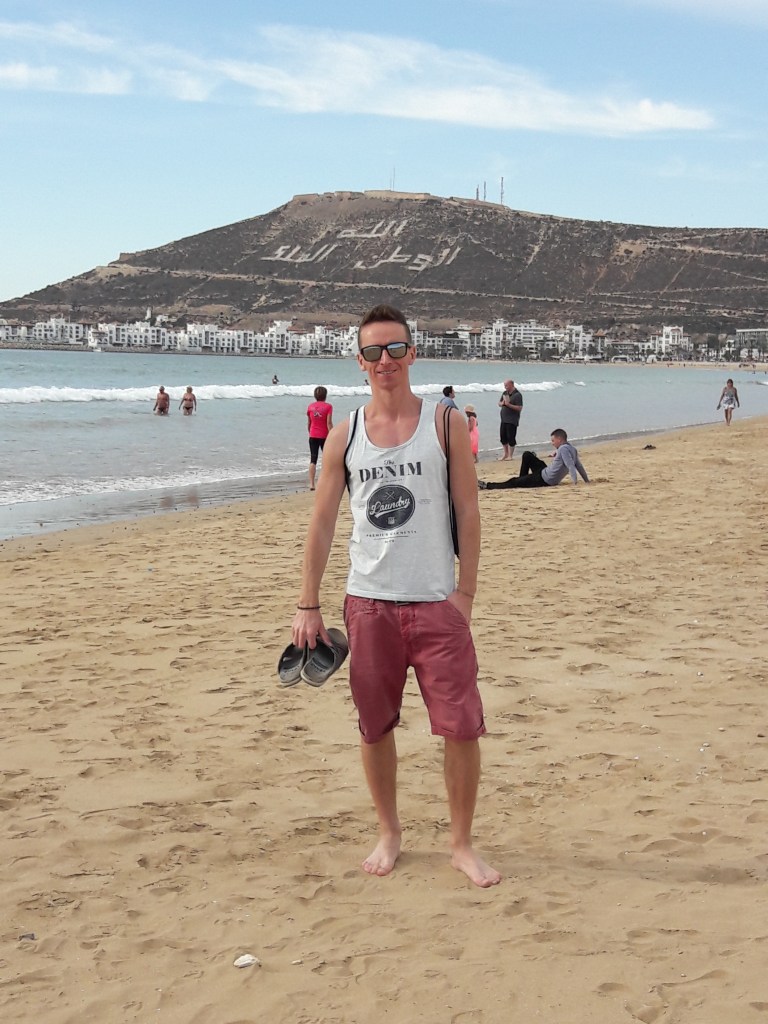 Maročania sú obchodníci, majú to v krvi a keď im to dovolíte, vytiahnu z vás aj posledný cent. Keď sa ich pýtate niečo po anglicky, tak nikdy nerozumejú ani mäkké f. Keď vám ale chcú plážoví predajcovia suvenírov nanútiť dáku svoju hovadinu, tak zrazu z každej strany počuť: „Hi!“, „Where are you from?“, „Wanna surf?“ alebo „Camel? Ride? Picture?“ Mňa tiež presvedčil jeden z týchto chlapíkov na fotku s ťavou. Ten blázon odomňa pýtal 100 dirhamov. Nevedel, že robím v banke a že ma len tak ľahko neodrbe, lebo na vyjednávanie som už zvyknutý. Dohodli sme sa na 50 dirhamoch, čo je asi 5 eur. Aj tak si myslím, že to je v Maroku za pár fotiek dosť, ale už som sa s ním nechcel viac naťahovať. Vravel, že za 200 dirhamov ma na ťave povozí. Na to som ja ale nemal chuť ani keby to je zadarmo. Tak som mu poďakoval za spoluprácu a pobral sa ďalej.