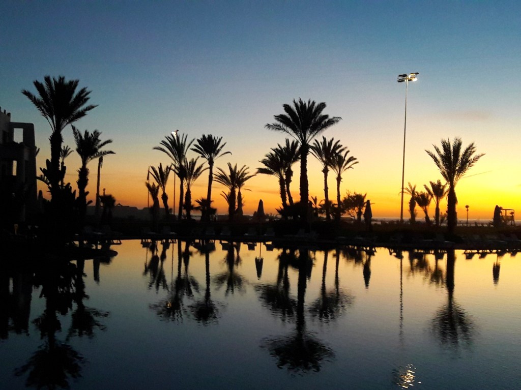Do Agadiru som dorazil neskoro večer, zobral na letisku prvý taxík a unavený zaľahol do postele. V Izraeli som spal na hosteli, tak tu som si pre zmenu dožičil trocha súkromia a luxusu v 4**** Palais des Roses Hôtel, kde som mal skutočne jak na ružiach ustlané. Manažér hotela videl, že sa mi u nich naozaj páči a požiadal ma, či by som o hoteli napísal na Trip Advisore recenziu, v ktorej by som ich vychválil až do nebies a pridal aj zábery, lebo ma videl ako si robím fotky v priestoroch hotela pri západe slnka. Sľúbil som mu, že postnem super tuti fruti hodnotenie akonáhle sa vrátim domov. Lenže mne sa nikdy nechce vypĺňať tie ich spätné väzby, tak som sa na to nakoniec vykašlal. Síce trocha oneskorene, s odstupom času „len“ dvoch rokov, to robím ako vidíte aspoň takto vo svojom denníku. Nie je to síce žiaden Trip Advisor, ale niekto z vás, kto práve čítate tieto riadky a máte v pláne si na pár dní oddýchnuť v Maroku, si možno hotel Palais des Roses, na základe môjho odporúčania, vyberiete ako miesto svojho pobytu tiež. Určite nebudete banovať, hotel leží na pobreží Atlantického oceánu a má ten najdlhší bazén v celom Agadire. Ja som ti ho pozeral aj z vtáčej perspektívy cez google mapy a prisámfakt, čestné skautské (i keď som nikdy skautom nebol) je tomu naozaj tak.
