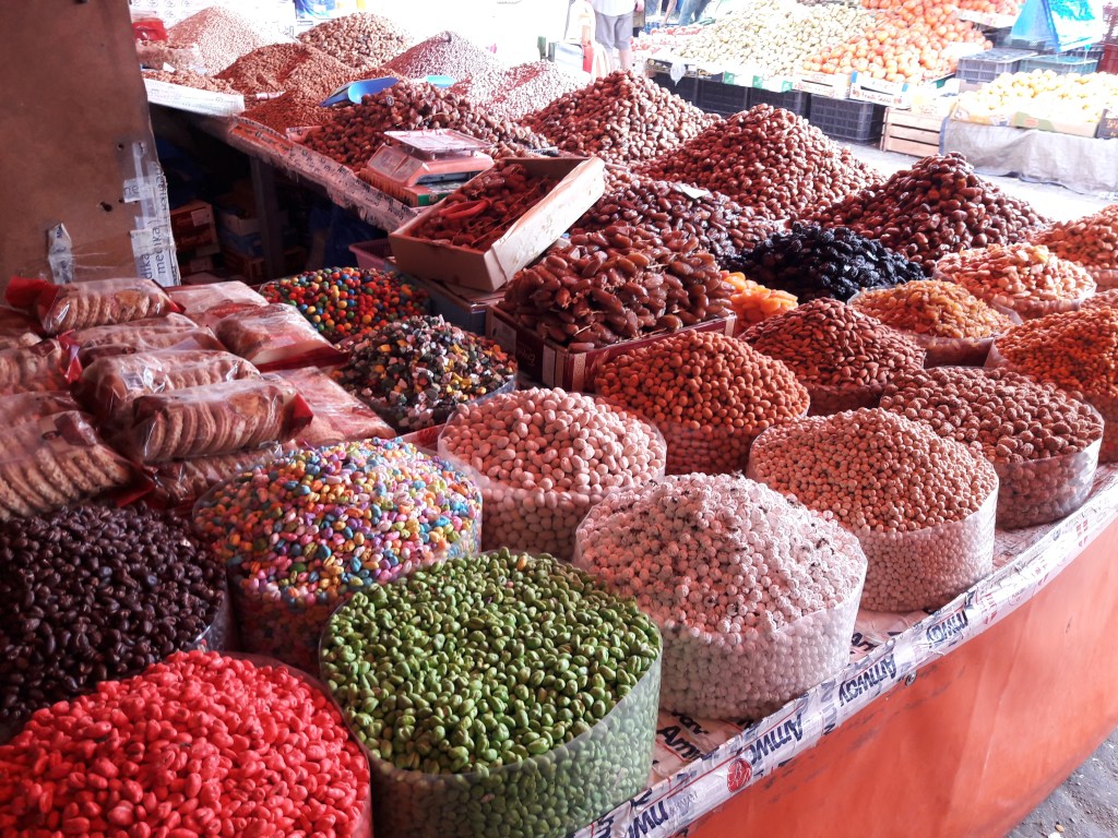 Posledný deň som sa šiel ešte pozrieť na miestny trh Sunday market, kde som mal v pláne minúť posledné dirhamy. Hneď, ako som tam vkročil, si ma všimol jeden zo stánkarov, ktorý sa ma držal jak v zime sopeľ a ani za jeho svet nie a nie sa ho zbaviť. Čo už, aj tak som mal v úmysle nakupovať, tak som mu posunkovou rečou vysvetlil, že hľadám magnetky. Zaviedol ma teda k stánku svojho kamaráta, kde som si aj nejaké vybral. Potom som mu už naznačil, že nič iné nechcem a nechal ma na pokoji. To samozrejme nebola pravda, lebo som mal stále dirhamy v prepočte tak za 10 EUR, ktoré som tam chcel oplieskať. Pokračoval som teda v motaní sa po trhu, kde mali tovar od bežných potrieb do domácnosti, cez živú hydinu, čerstvú zeleninu a ovocie až po desiatky druhov korenia.