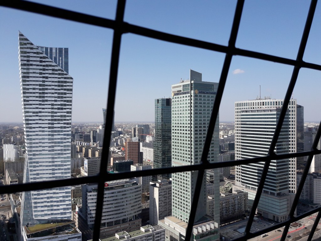 Neprehliadnuteľný Palác vedy a kultúry som si všimol aj z lietadla ešte pred tým ako sme pristáli na letisku vo Varšave a na jeho návštevu som sa tešil asi najviac. Niekde som čítal, že to je dar od Stalina a nakoľko vraj pripomína obdobie stalinizmu, uvažovali nad jeho zbúraním. Neviem síce v akej chorej hlave sa ten nápad zrodil a čo je na tom pravdy, ale vďaka bohu sa nikdy neuskutočnil. Mesto by tým stratilo svoju najcennejšiu pamiatku (Ako som spomínal, Varšava už tak prišla o veľkú časť histórie počas bombardovania v druhej svetovej vojne). Hore do rozhľadovne na 30. poschodí vás za pár sekúnd vyvezie výťah. Niektorí návštevníci mali zrejme pocit, že dole by to mohlo byť ešte rýchlejšie skokom, čo je nepochybne pravda, ale asi to nie je moc rozumné. Pár ľudí to aj naozaj skúsilo, tak sem pre istotu nainštalovali bezpečnostné závory. Jediná cesta späť je tým pádom už len výťahom a nie aj voľným pádom.