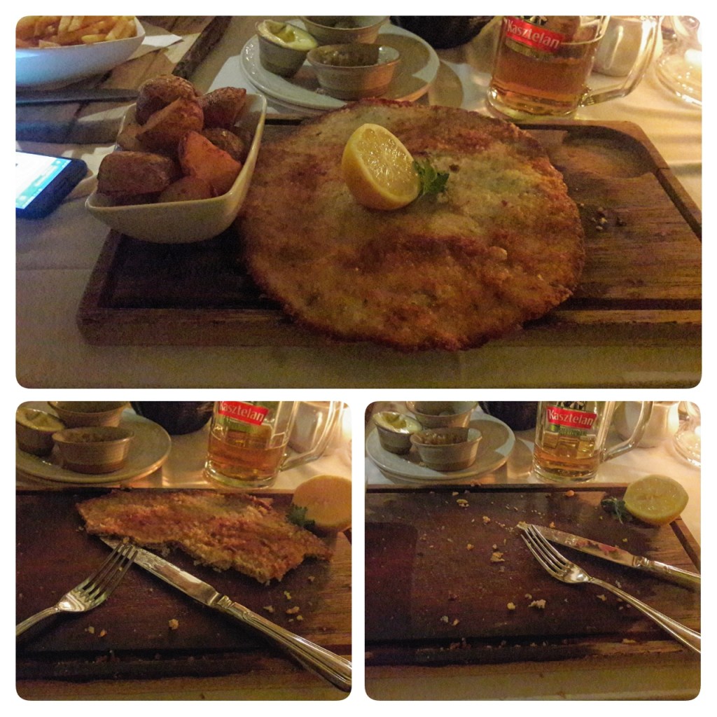 Večer sme na najedli v Starom Dome, čo už je jedna z tých lepších reštaurácii, kde vás usadia k stolu, môžte počúvať živú hudbu alebo aj sledovať kuchára pri práci. Neviem, čo pod zub si vybrali chalani, ale ja som si objednal „šnicličku“. Bol to ale riadny kus mäsa, jeden z najväčších aký som jedol. Na otázku čašníka, čo si dám ako prílohu som ja galgan poľskej gastronómie neznalý odpovedal, že si prosím ryžu. Ten na mňa pozrel, či som kompletný. Jeho prenikavý pohľad ma dokonca prinútil zmeniť názor a dať si pečené zemiaky. Nuž, Poliaci zrejme moc tej ryže počas roka nezkonzumujú.