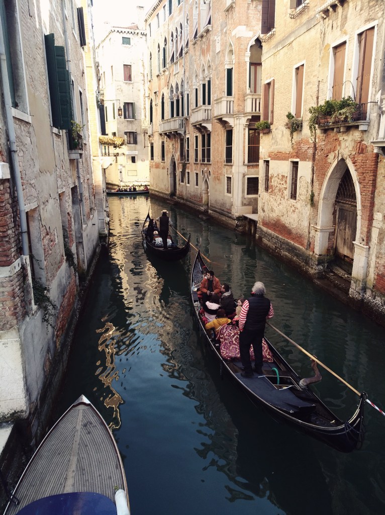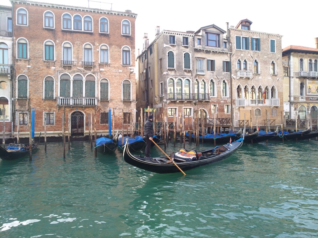Hneď po príchode sme sa vrhli na fotenie úzkych drevených lodičiek zvaných gondoly, ktoré sú typickým dopravným prostriedkom v Benátkach. Ak máte niekto vo vačku nepotrebných 80 Eur, tak sa môžete nechať povoziť po kanáloch. My ste tejto lákavej ponuke odolali a dali prednosť pešibusu.
