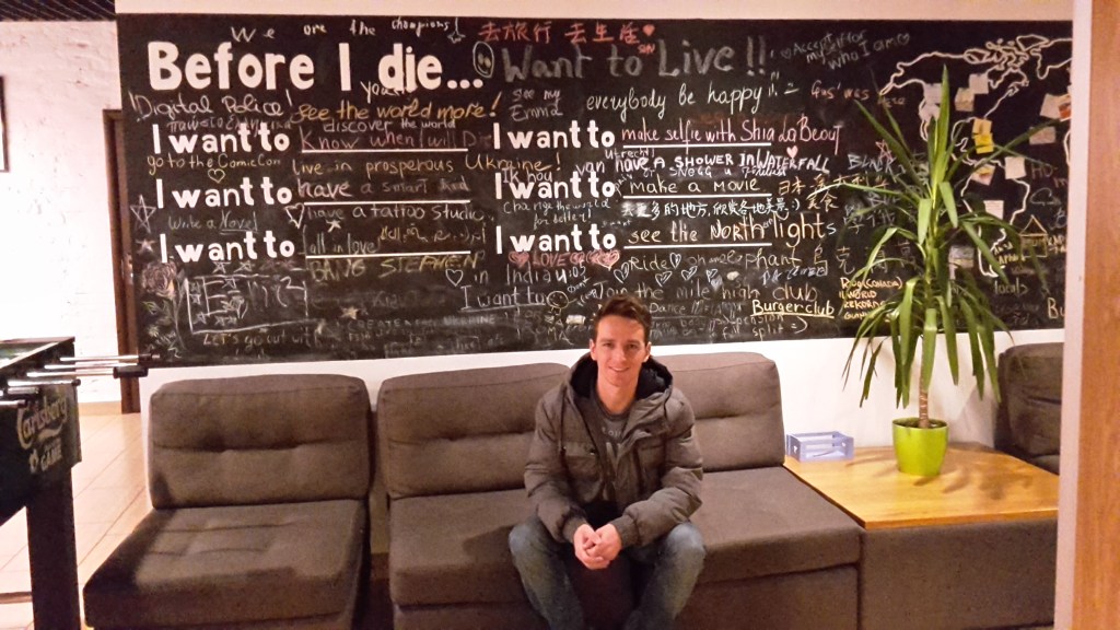 Zmrznutý ale vcelku spokojný som sa vrátil na hostel. Nešiel som už nikam. Včera bol dlhý večer a dnes som sa aj tak chcel normálne vyspať, lebo skoro ráno ma čakal let domov. Ráno som potichu vstal, rozlúčil sa aspoň v Malcolcom a šiel na recepciu, kde som počkal na svoj taxík na letisko. Tu mi ešte dievča z recepcie spravilo fotku pri stene s nápisom Before I die I want to…, kde si hostia z hostela dávali predsavzatia, ktoré by chceli za svoj život stihnúť. Boli tam rôzne ambiciózne plány ako trebárs …napísať román, …natočiť film, …vidieť polárnu žiaru, …mať tetovacie štúdio, ale aj úplne obyčajné no o to krajšie ako …žiť alebo …zaľúbiť sa.
