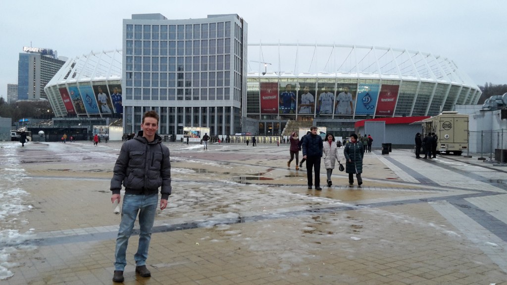 Súperom domáceho mužstva bol tím FC Stal. Priznám sa, že za tých asi 150 hrivien (prepočte tak 5€) som čakal oveľa vyššiu účasť fanúšikov. Tribúny na štadióne boli ale počas celého zápasu poloprázdne. Ťažko povedať, či to bolo tým, že bola vonku už dosť zima a po celý čas aj mne napriek teplým spodkom mrzla na sedačke riť. Alebo tých 150 hrivien, čo sa mne mohlo zdať ako symbolická suma je pre väčšinu pracujúcich ľudí v Kyjeve viac ako by boli ochotní za obyčajný ligový zápas dať? No netuším. Napadá mi ešte aj to, že o týždeň sa na tomto štadióne mal odohrať zápas skupinovej fázy ligy majstrov a tak zrejme tréner Kyjeva postavil ten deň na trávnik viacerých chalanov z lavičky a zápas tým pádom nebol pre divákov až taký sexi. Kto vie? Na druhej strane tých pár skalných, čo tam bolo, fandilo svojmu mužstvu o sto šesť a možno aj preto to tím Kyjevu dotiahol do víťazného konca a porazil Stal 2:1.