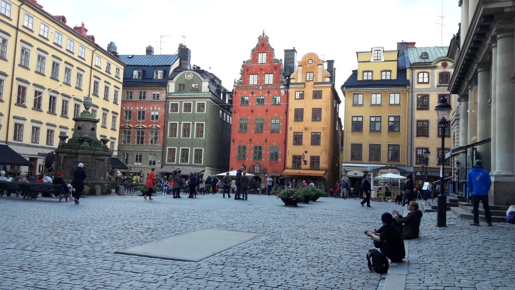 Ďalší deň sa počasie trocha pokazilo, čo neznamenalo, že som zostal sedieť na zadku na hosteli. Do mesta som sa ten deň vybral spoločne s novým kamarátom do dešte Johnom. Ten mal síce v pláne obehať viaceré múzea, ale od toho som ho rýchlo odhovoril. Zamierili sme k ostrovu Gamla Stan, ktorý ako som spomínal je historickým jadrom mesta. Sídli tu kráľovský palác, rôzne múzea, kostoly, desiatky barov a kaviarní. Dominantným prvkom je Riddarholmen Church, v ktorom odpočívajú zosnulí švédski monarchovia. Nás ako aj väčšinu turistov zaujalo centrálne námestie Stortorget a jeho farebné stredoveké domy, ktoré patria k najfotografovanejším pamiatkam mesta. Samotný Gamla Stan sa dá ale najlepšie vyfotiť z móla oproti, kde kotvia lode agentúry, ktorá organizuje výletné poznávacie zájazdy alebo aj z promenády, na ktorej stojí budova mestskej radnice. Tak sme sa tam vybrali.