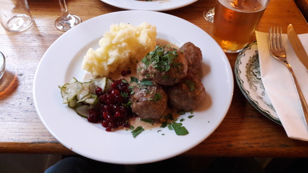 Večeru sme si dali v typickej škandinávskej reštaurácii Nomad Swedish food & bar nachádzajúcej sa len kúsok od nášho hostela. Boli to najdrahšie, no zároveň aj tie najlepšie mäsové guľky aké som kedy jedol. A keďže mal môj nový kamarát z Chestru narodky, bolo treba ich aj patrične osláviť. Tak sme po večeri skočili na „jedno“ do Gamla Stanu. Hah, tu vidíte tú obrovskú lož, o ktorej som pred chvíľou písal? Vôbec sme neskončili len pri jednom. Pamätám si ako sme ešte o druhej v noci sedeli v McDonald´s a tlačili do seba ich cheesburgery. Tie ale v Johnovom žalúdku dlho nepobudli, lebo sa pogrckal jak malý chalan a domov na hostel som ho musel odniesť na ramene, lebo to kapánek nezvládol. Ráno mal chudák riadny hangover a aj trocha okno, ale myslím, že tieto narodeniny si bude chlapec pamätať do konca života a už nikdy viac nebude piť. Ups ďalšia donebavolajúca lož, lebo hneď ráno sme zbehli do večierky 7-eleven oproti hostelu na tzv. vyprošťovák a ľahké raňajky, po ktorých som sa musel už žiaľ pobaliť nakoľko sa blížil môj let domov.