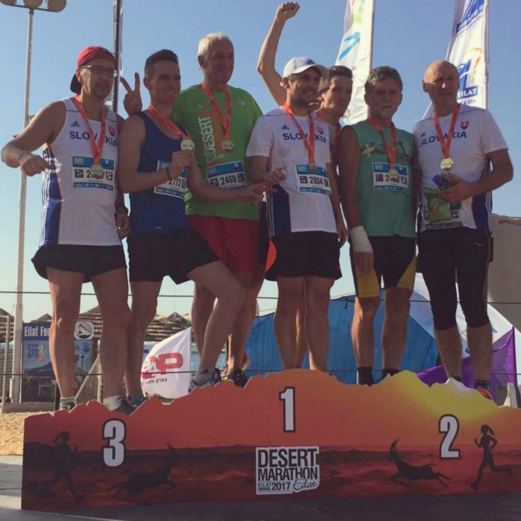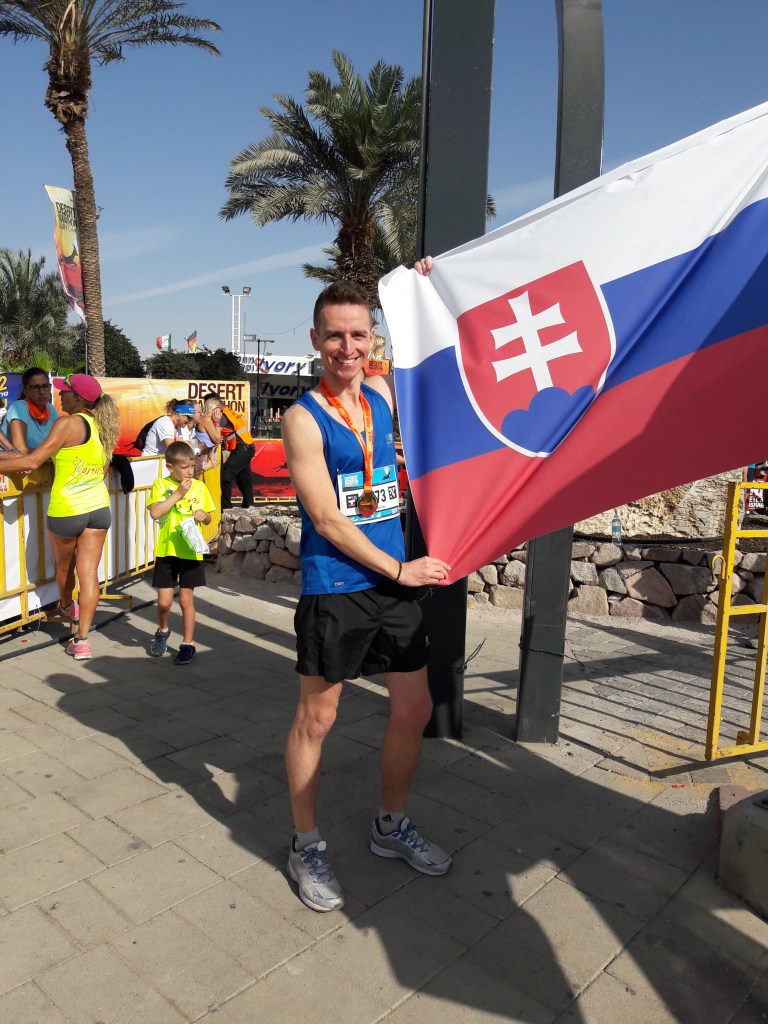 Moc som toho nenaspal. Kým som v noci zaľahol bola už takmer polnoc a ráno o piatej sme už boli s chalanmi hore. Štart behov bol totiž naplánovaný na 6:00 a 6:15 ráno s východom slnka. Celkovo bolo 1113 bežcov (415 maratóncov a 698 polmaratóncov). Čiže žiadna masovka. Okrem mňa sa na štart polmaratónu postavili ďalší siedmi Slováci. Taká partia chalanov z Bratislavy a Banskej Bystrice, ktorých mená mi už dávno vyfučali z hlavy, respektíve som si ich ani len nezapamätal. Ale všetci poznáte ten pocit, keď sa vám ktosi predstaví a vzápätí zabudnete jeho meno. Z Európanov tu mali najväčšie zastúpenie Poliaci. Myslím, že zrejme pre ich lacné letenky z Krakova, odkiaľ sem priletel aj spolubývajúci Maks. Ale dosť bolo štatistiky. Tri, dva, jednaaa.. run! Bežalo sa po hlavnej ceste naprieč Eilatom a asi po troch kilometroch neďaleko rezervácie sťahovavých vtákov sa trasa prudko stočila doľava smerom do púšte. Asfaltový povrch nahradil štrk, hlina a piesok. Sem tam nejaký ker či vyschnutý strom a všade naokolo zvetrané skaly. Ten práchnivý povrch sa dosť šmýkal a keď sa mi ešte aj do tenisiek začali dostávať malé kamienky, pochopil som, že tu si osobák asi nespravím. I keď to mi bolo jasné hneď ako som ten beh objavil na internete. Kolóna bežcov a rozostupy medzi nami sa roztrhávali len veľmi pomaly. V podmienkach aké tu boli sa myslím aj trocha strácali rozdiely medzi lepšími a slabšími bežcami. Bolo skoré ráno, ale slnko už začínalo pražiť. Smädný som nebol, ale aj tak hneď pri prvej občerstvovačke (ktoré boli zhruba každé 3 kilometre) som sa aspoň oblial vodou a vypláchol si ústa. Nebežalo sa veru ľahko, no zhruba na ôsmom kilometri som si začínal zvykať a tuším aj chytil druhý dych. Pri občerstvovačke na 9 kilometri som pred sebou zbadal masu ľudí. Ani som nezastavoval a bežal ďalej. Chyba, preveľká chyba. Po vyše kilometri oproti mne utekali bežci vracajúci sa z prvej otočky. Podľa farby ich štartovného čísla na hrudi to boli maratónci. S niektorými som sa aj pozdravil, veď to bežci bežne robia. Jeden mi však naznačoval, že sa mám otočiť. Nechápal som. A zrazu mi to docvaklo. „Tá občerstovačka! Bohaaa!!!“ Viem, vo Svätej zemi by som mal vážiť slová a nebrať Božie meno nadarmo. No bol som nasratý a hrešil jak pohan. Pri tej mase ľudí na 9km som mal odbočiť. Pokračovať rovno ďalej mali už len maratónci. Keď som sa vracal späť, zistil som, že nie som jediný domotaný. Polmaratóncov, ktorí spravili tú istú chybu čo ja, bolo celkom dosť. Zachoval som sa ako dobrý pastier a tie ďalšie zblúdilé ovečky, čo tiež zišli z cesty som naviedol na správny smer. Zaslúžil by som si veru medailu za fair-play. Keď som bol znova na tej nešťastnej občerstvovačke, zbadal som dolu na zemi smiešne malú tabuľu, ktorá značila, že sa treba už otočiť. Vravím si: „To akože ozaj? Veď to som nemal šancu vidieť!“ Musel by som mať snáď röntgenové oči. Na druhej strane, kedy som si večer pred behom pozrel mapu trasy, ktorú sme dostali spolu so štartovným balíčkom, tak by som dobre vedel, že sa tam treba zvrtnúť. Každopádne asi ma to nakoplo, lebo druhú polovicu polmaratómu som už bežal jak laňka. Zopár bežcov som aj predbehol a dúfal, že stále mám šancu dosiahnuť slušný čas a neskončiť niekde na chvoste ale aspoň v polke, čo je taký môj štandard. V diaľke som už znova videl Eilat. Trasa pokračovala popri hranici s Jordánskom a okolo slaných jazier odkiaľ sa stáčala doprava k plážovej promenáde a luxusnej hotelovej zóne, kde bol finiš. Do cieľa som dobehol v čase 2hod 24min, čo bol môj najhorší čas na 21km. Za bežných okolností, keby bežím polmaratón dlhšie jak 2 hodiny, tak sa aj celkom hanbím. Upokojoval som však tým, že predsa v púšti a s troma kilometrami navyše to nebolo až také zlé. Navyše výherné časy polmaratóncov aj z predošlých ročníkov sa pohybovali okolo 1hod 25min a maratón tu nik nezabehol pod 3 hodiny, čo je hlboko pod priemerom. Ale ani Eliud Kipchoge by v Eilate moc vody nenamútil. Sem ale ani elitní bežci nechodia, lebo tu by len ťažko vylepšili svoje osobné maximá. Tento beh je úplne o niečom inom, o emóciách a zážitku. A že som mal tých emócií v cieli plnú hlavu môžem len potvrdiť. I keď šlo o zmiešane pocity. Na jednej strane endorfíny šťastia a na strane druhej veľké sklamanie z toho jak som to celé dojebabral. Ale čo už, mea culpa. Mal som si pozrieť ten profil trate, bodka. Nemôžem a ani nebudem vinu hádzať na nikoho iného. A to mám tiež za to, že som si ešte pred príchodom do Eilatu robil srandičky z toho či sa náhodou nestratím v púšti. Nuž stalo sa.