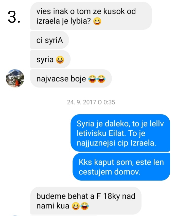 No a môžete hádať ako to dopadlo. Samozrejme, že som do Izraelu letel nakoniec sám. Ako ste si mohli všimnúť v našej komunikácii, tak kamošove pôvodné nadšenie neskoršie zvrátili ťažké boje v Líbyi, pardon v Sýrii a bojové stíhačky typu F-18, ktoré by nám v Eilate „istotne“ lietali nad hlavami. Je síce pravda, že dlhotrvajúce napätie medzi izraelským a palestínskym etnikom nemožno ignorovať, avšak treba aj racionálne rozmýšľať prípadne občas použiť zdravý sedliacky rozum. Letmým pohľadom do mapy človek ľahko zistí, že Eilat leží v najjužnejšom cípe Izraelu ďaleko od pásma Gazy a v uliciach preto zrejme nebudú pobehovať povstalci či chlapci s puškami. Ale nevadí. Som toho názoru, že nemá zmysel niekoho prehovárať a tlačiť na pílu, lebo keď sa náhodou niečo pokafre, tak sa potom človek za to cíti zodpovedný. Navyše čo keby tam predsa len šliapol na mínu alebo nedajbože nabúchal radodajnú dcéru vodcu hnutia Hamas krásnu no nevidiacu Jasmínu? A potrebujem si ja pohnevať palestínskych povstalcov? S tým som veru nechcel mať nič spoločné. Mojím cieľom bolo odbehnúť si svojich 21km v púšti a potom sa zase živý a zdravý vrátiť domov. Poďte spolu so mnou späť do Svätej zeme zažiť jedinečné bežecké podujatie s názvom Eilat Desert Marathon, na ktoré určite nikdy nezabudnem.