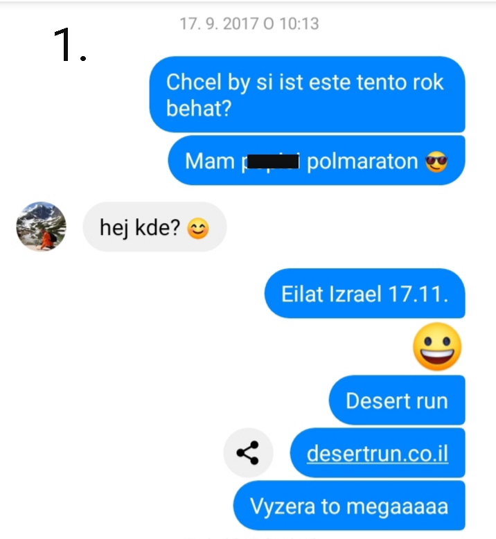 Nadšený z toho, aký fajný trip som zosnoval, napísal som hneď kamošovi z práce, ktorý tiež rád behá a cestuje. Predpokladal som, že by sa chcel pridať a viem si tiež živo predstaviť ako by asi lamentoval, že som ho nezavolal. No Boh aj Mark Zuckerberg sú mi svedkami, že som sa o to pokúsil. Hľa: