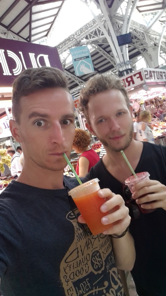 Ak pri túlaní sa ulicami starého mesta vysmädnete, môžete si dať drahé pivo na terase v niektorom z okolitých kaviarní alebo radšej ochutnať čerstvú šťavu bez konzervantov a éčok za smiešne 1 éčko na neďalekom trhovisku Mercat Central. Miesto, kde si miestny nakúpia všetko, čo ich chladnička potrebuje od čerstvých rýb, mäsa, ovocia a zeleniny, syrov a pod. Najviac ľudí postávalo pri stánkoch s typickou sušenou šunkou. Ani ja som veru neodolal a zvečnil sa pri obrovských kusoch visiaceho mäsa, z ktorých tuším niektoré vážili pomaly viac než ja.