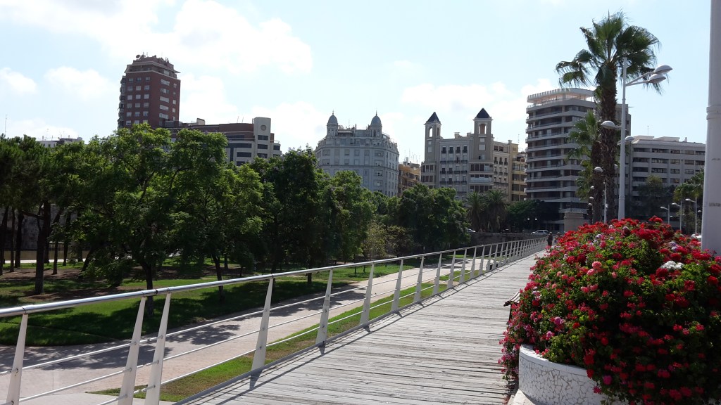 Naprieč Valenciou sa tiahne asi 9 km dlhý park s názvom Turia Gardens, pomenovaný po rieke Turia, ktorá kedysi pretekala mestom. Po opakujúcich sa záplavách sa ale vedenie mesta rozhodlo pre radikálny krok a odklonili tok rieky mimo centra. Vznikla však otázka čo s voľným priestorom? Mala tam byť pôvodne cesta, ktorá by umožnila kamiónom ľahší prístup k prístavu. Proti tomuto riešeniu však namietali miestni obyvatelia. Nakoniec sa rozhodli prázdne koryto rieky premeniť na mestský park. Tak vo Valencii vyrástlo miesto plné zelene, lavičiek, jazierok s vybudovanými chodníkmi a cyklochodníkmi, ktoré je jednou z najväčších tromfov krásnej Valencie. Touto oázou uprostred rušného mesta sme prechádzali takmer každý deň a mali tak možnosť vidieť ako si domáci športom udržiavajú svoju kondičku a formujú postavičku. Ani sa im nečudujem. Aj ja som mal sto chutí pridať sa k desiatkam bežcov, ktorí si okolo nás dávali do tela. Ak sem ešte niekedy zavítam, určite si do batohu pribalím aj svoje bežecké botasky.