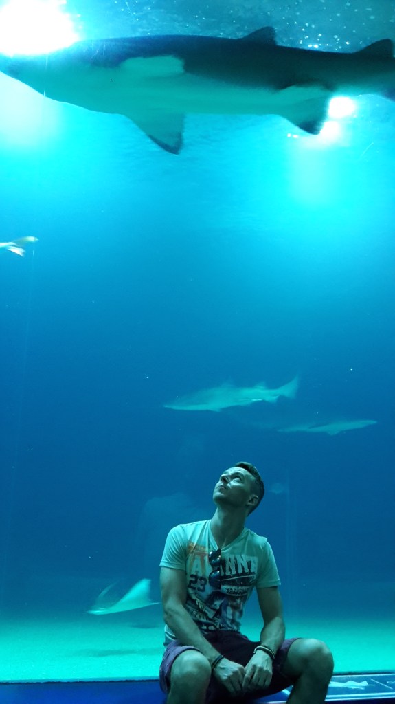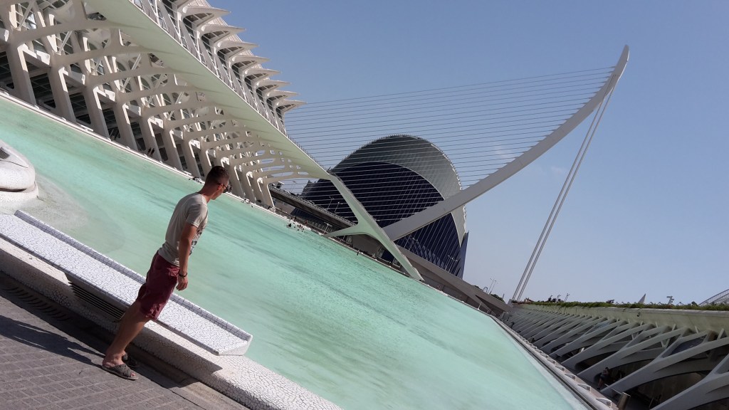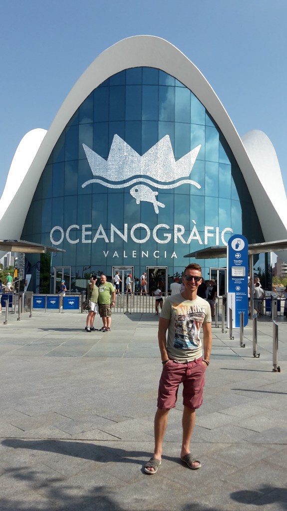 Neďaleko Mesta umenia a vedy sa nachádza Oceanografic – podmorský svet, kde sa podľa mňa rovnako zabavia deti aj dospelí, prípadne sa aj z dospelých stanú na chvíľu opäť deti. Ja som si tam spomenul na jeden úžasný deň z môjho detstva, keď som k svojim piatym narodeninám ako darček dostal akvárko. Bola vtedy nedeľa a hneď ako skončil v telke Kuko sme sa na bajkoch vybrali k Váhu po štrk, aby mali tie malé rybky do čoho kadiť. Dokonca aj dnes sa vždy rád pristavím pri výklade obchodu s akvaristikou a obdivujem ten bezstarostný svet rybičiek. Najviac som si v Oceanograficu užil tunel, v ktorom nám nad hlavami plávali žraloky. Ostatní návštevníci už dávno prešli, no my sme tam strávili tuším dobrú pol hodinu. Ja nalepený na skle snažiac sa mobilom zachytiť nejakého zubatého drsnokožca, zatiaľ čo Robo už mierne znudený si pre zmenu krátil čas chytaním pokémonov. V podmorskom svete sme zblízka videli tiež medúzy, tučniaky alebo také vysmiate veľké kusy sadla zvané bieluhy, ktoré na nás spoza skla celý čas hľadeli s potmehúdskym úškrnom Mony Lisy. Vonku chovajú aj exotické vtáky, motýle, veľké suchozemské korytnačky a iné stvory. Na záver sme sa boli pozrieť aj na delfíniu show, kde sme obaja s údivom sledovali ich niekoľko metrov vysoké výskoky z bazéna. A aby bolo jasné, vôbec tam neboli len malé deti ale aj kopec dospelých a sledovanie delfínov je naozaj hrozne drsňácke.