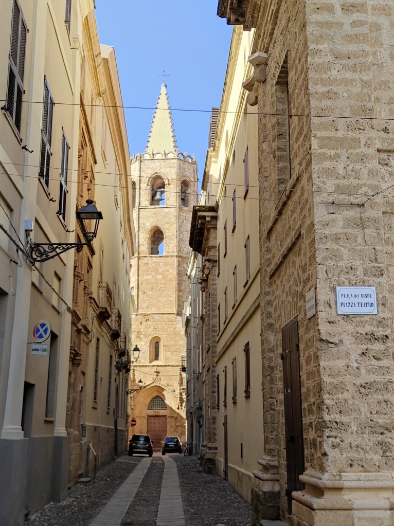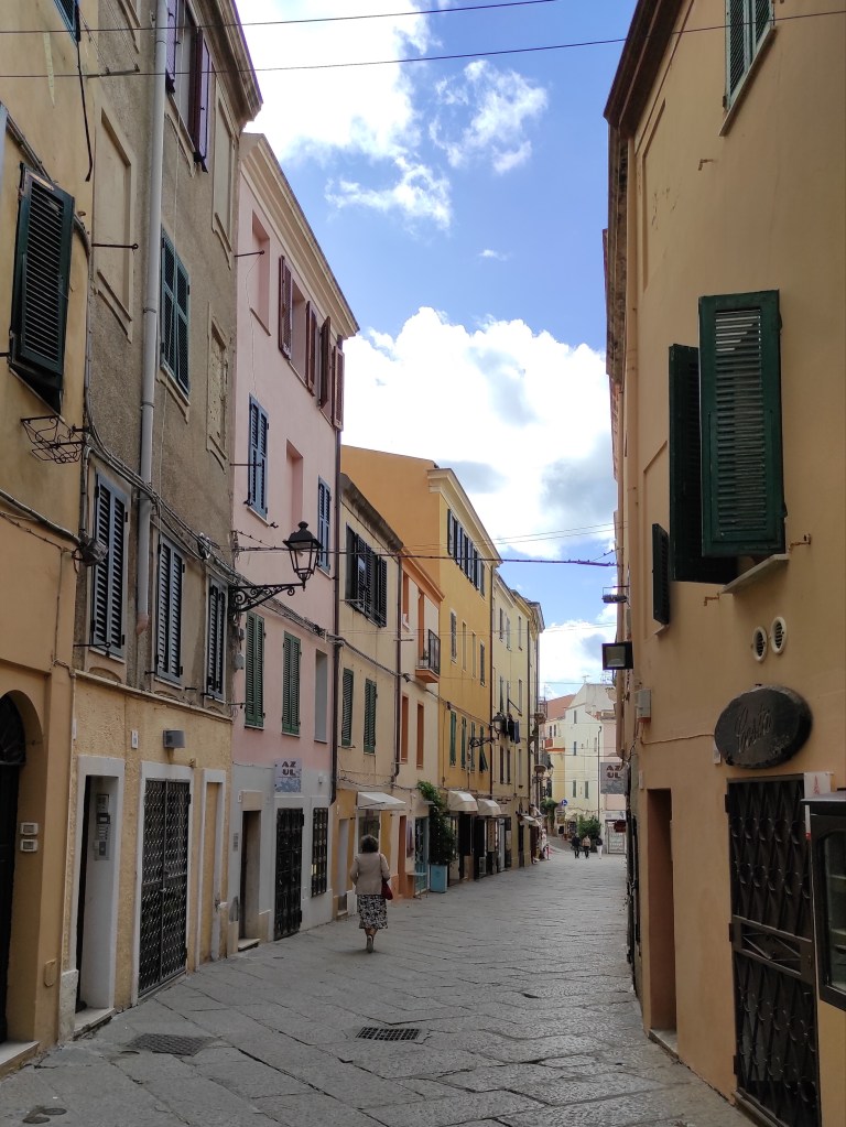 Ale späť k Algheru. Je to prístavné mesto na severozápadnom pobreží slnečného ostrova Sardínia. I keď v mojom prípade viac upršaného ostrova. Počasie sa mi tu menilo z hodiny na hodinu asi jak covid semafór a keď som šiel von, netušil som, čo si mám vlastne obliecť. Našťastie to je taká prťavá dedina, ktorá je od jedného konca po druhý prepchatá barmi a reštauráciami. Takže v prípade, keď sa Oskar so mnou hral na schovku, tak som sa ja mohol skryť v niektorej z nich. Väčšina síce víta hostí alebo otvára kuchyňu najskôr po 18-tej, no kto hľadá nájde a kto nie, tomu aj chuť zájde.