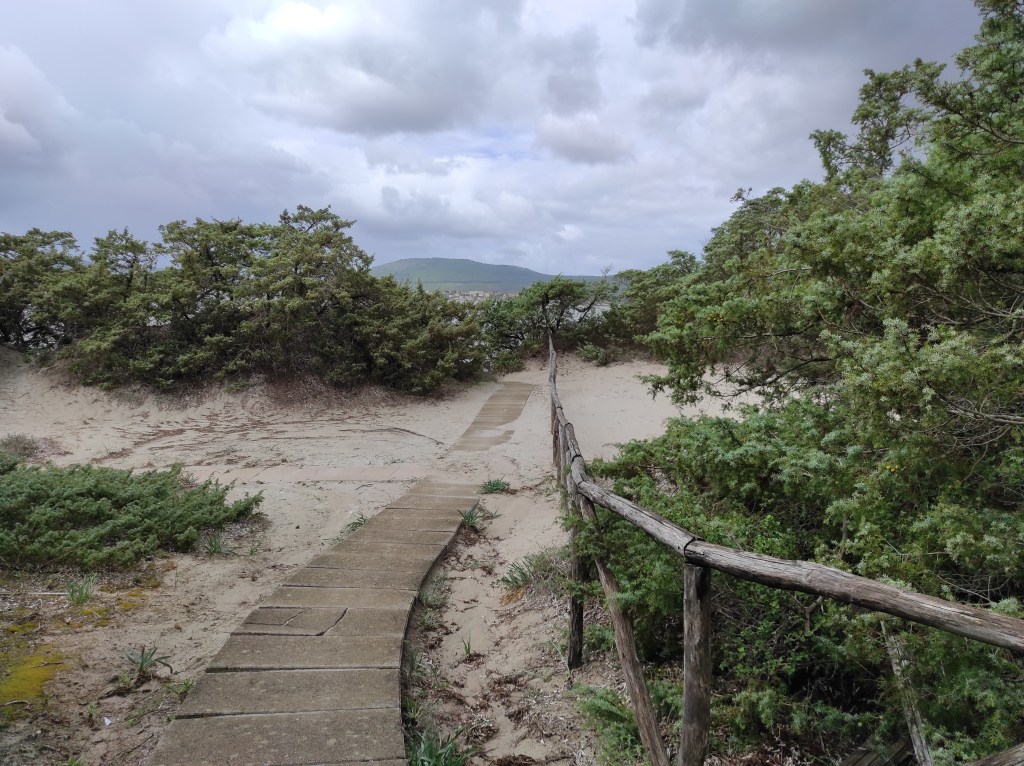 Od Alghera je táto pláž vzdialená asi 50km smerom na sever. Nenašiel som však žiaden priamy spoj, len s prestupom cez prístavné mestečko Porto Torres. Za tých pár dní som však stihol navnímať, že autobusy na Sardínii jazdia veľmi spoľahlivo, tak sa ozaj niet čoho obávať. Je pravda, že môj orientačný zmysel ma už párkrát sklamal, no ak čakáte, že teraz bude nasledovať vtipná príhoda o tom, ako som sa stratil, tak vás žiaľ sklamem, pretože nič také sa nestalo a zvládol som to celé tak ako som si aj naplánoval. Len jediná maličkosť. Platobnú kartu som si zabudol ráno na izbe. Našťastie tá aplikácia DropTicket na kúpu cestovného lístka je viac smart ako ja a číslo mojej karty si už pamätala. Nepamätala si však 3-miestny CVC kód z jej opačnej strany, tak som musel nad tým chvíľu dúmať. Ešte že nakupujem (letenky) cez internet a na ten kód som si spomenul.