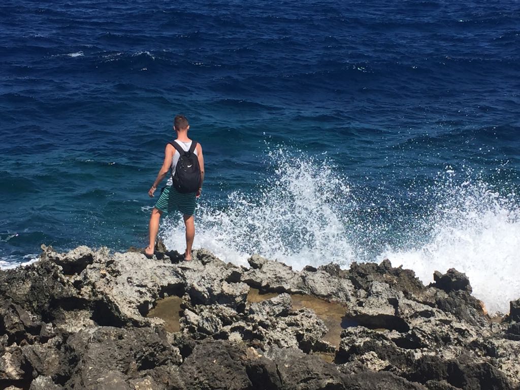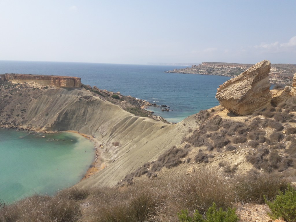 Posledný deň v Melliehe sme sa autobusom odviezli k Armier Bay, odkiaľ sme popri pobreží pokračovali pešo až ku Coral Laggon. Je to nepochybne jeden z najzaujímavejších úkazov na Malte. Nachádza sa tu jaskyňa, ktorej strop sa celý prepadol do mora a vznikla tak obrovská fuga, ktorá je teraz takým prírodným bazénom. Dostať sa dňu však vôbec nie je jednoduché. Buď skočíte alebo oboplávate od mora cez otvor nad hladinou. Pobrežie je však plné ostrých skál, do ktorých prudko vrážajú morské vlny. Takže sme na to nenabrali kuráž alebo len jednoducho tentokrát nad nerozvážnosťou zvíťazili pud sebazáchovy a zdravý rozum.