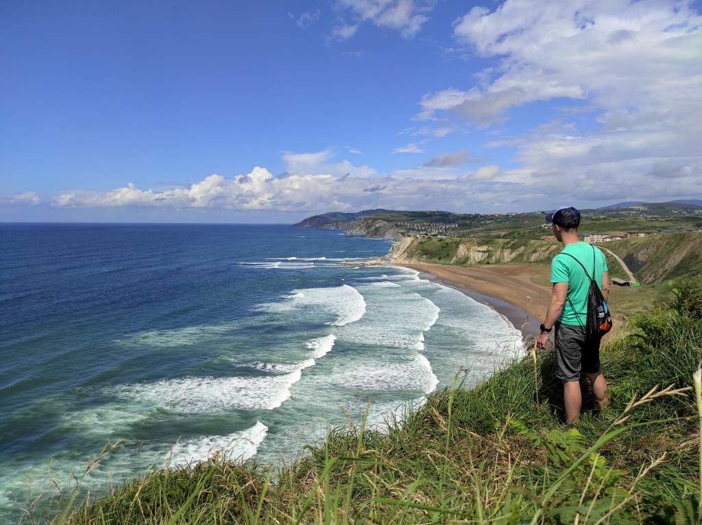 Bilbao nemá priamy prístup k moru, ale zato má dobre fungujúce metro, s ktorým sa dá dostať k pobrežiu Biskajského zálivu za necelú pol hodku. Potom už len stačí prejsť pár minút pešo a dostanete sa k útesom s úchvatným výhľadom. Nachádzajú sa tam tri nádherné pláže – Playa de Sopelana, naľavo od nej Playa Gorrondatxe a po pravej strane Arrietara beach. Plavky som si zo sebou nevzal, lebo bolo dopoludnia ako vždy dosť na chuja počasie. Cez obed sa napokon vyjasnilo, ale na holotrta som to (ako vlani na Sardínii) radšej neskúšal. Aj tak je tam zákaz kúpania. Pláže využívajú surferi a ozaj posledné, po čom by moje srdce prahlo, bolo dostať od niektorého z nich s doskou po čele.
