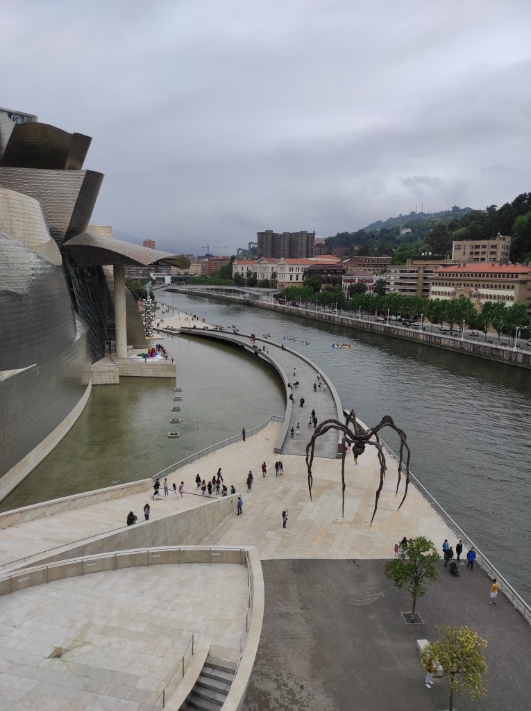 Ako som spomínal v predošlých riadkoch, hneď vedľa obrej tarantuly stojí Guggenheimovo múzeum moderného umenia. Už len samotná budova je ozajstnou pastvou pre oči. Pre zlé počasie a začínajúci dážď som sa šiel pozrieť aj na to, čo sa skrýva v jej vnútri. A veru nebanujem.