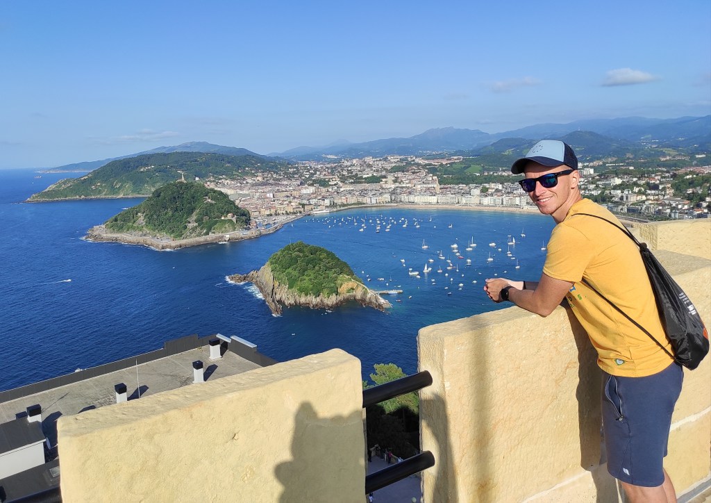 V deň odchodu zo San Sebastiánu som sa bol ešte prejsť na vyhliadku menom Monte Urgull, ktorá je rozhodne oveľa zaujímavejšia ako jej čudesný názov. Pôvodne som mal v pláne odcestovať hneď ráno busom spolu s Alison. Ona pokračovala do Bilbaa, ktoré bolo jednou zo zastávok do Santanderu, kam som mal zase namierené ja. Lenže všetky sedadlá v autobuse boli už obsadené a ja som musel počkať na ďalší spoj, ktorý šiel až o niekoľko hodín. Čakať na stanici sa mi rozhodne nechcelo, tak sme sa s Alison rozlúčili a ja som sa vrátil späť do mesta. Ako som tak sedel na pláži, napadlo mi, že by som sa mohol ísť prejsť na kopec oproti. Za normálnych okolností to nie je vôbec náročné a na vrchol vyhliadky to trvá pešo necelých 30 minút. S plným ruksakom na mojich spálených pleciach to bolo však hotové utrpenie a pripadal som si akoby som niesol kríž na Golgotu. Ale nevzdal som to a Monte Urgull sa mi odvďačil krásnym výhľadom, ktorý bol peknou bodkou za mojím výletom na sever Španielska.