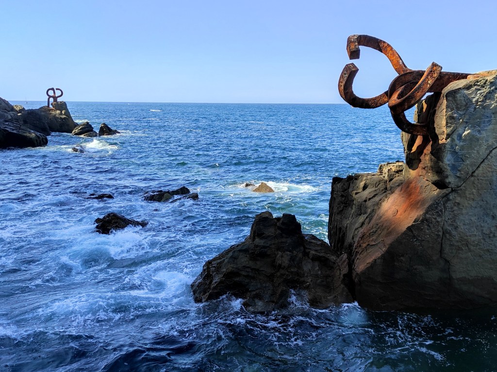 Moje prvé kroky v San Sebastiáne viedli k symbolu tohto mesta, ktorým sú kovové sochy menom Haizearen orrazia, v preklade hrebeň vetra. Je fascinujúce koľko turistov okrem mňa meralo cestu na opačný koniec pláže, aby sa mohli zvečniť s týmito hrdzavými kusmi železa. Tri 10 tonové kovové hrebene sú silno upevnené k útesom, vďaka čomu už niekoľko desaťročí odolávajú náporu vĺn a silného vetra. Myslím ale, že keby boli inštalované u nás, tak im je to prd platné a do rána by boli fuč. Naši potmavší spoluobčania by sa isto velice rýchlo postarali o to, že by všetky do jednoho skončili kdesi v zberných surovinách…